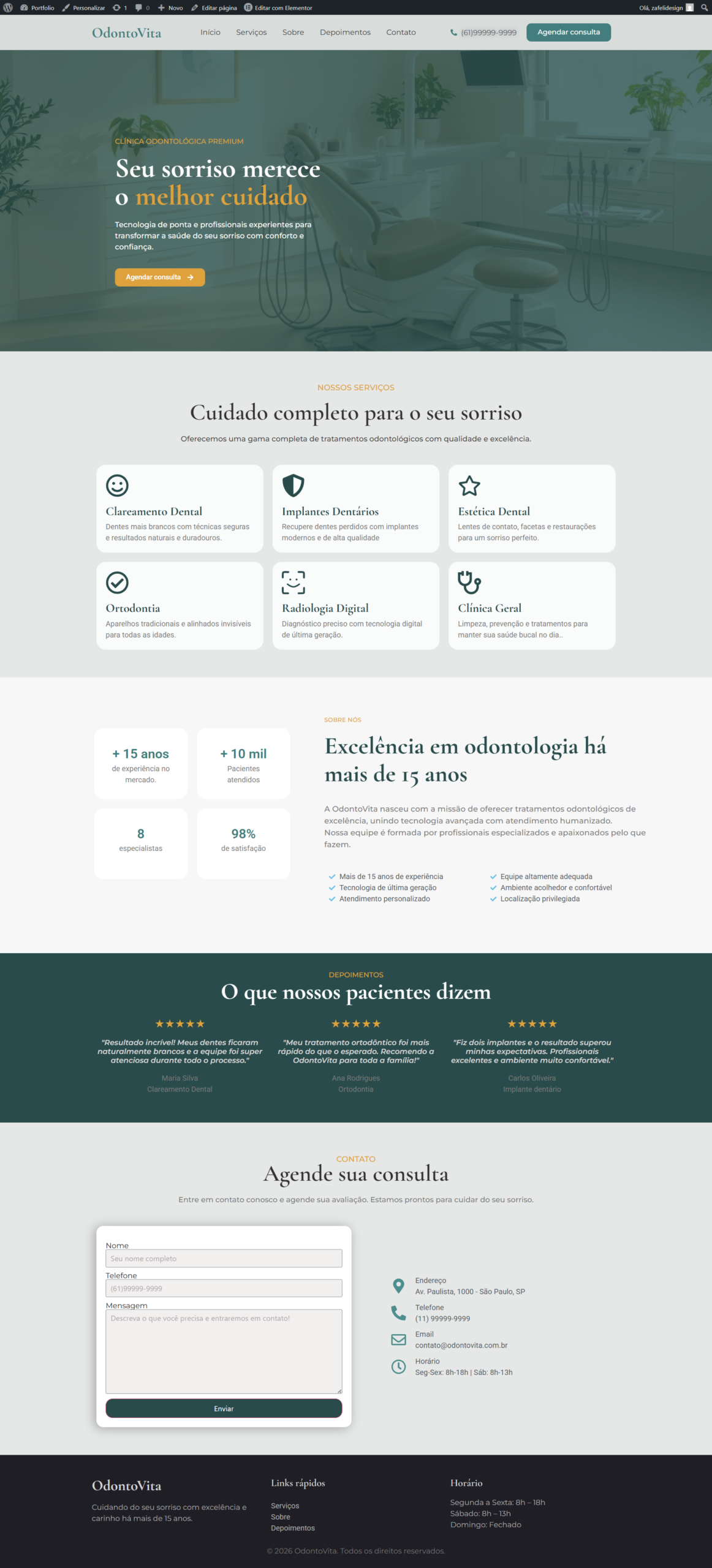 Site completo com design elegante e moderno para clínica odontológica.